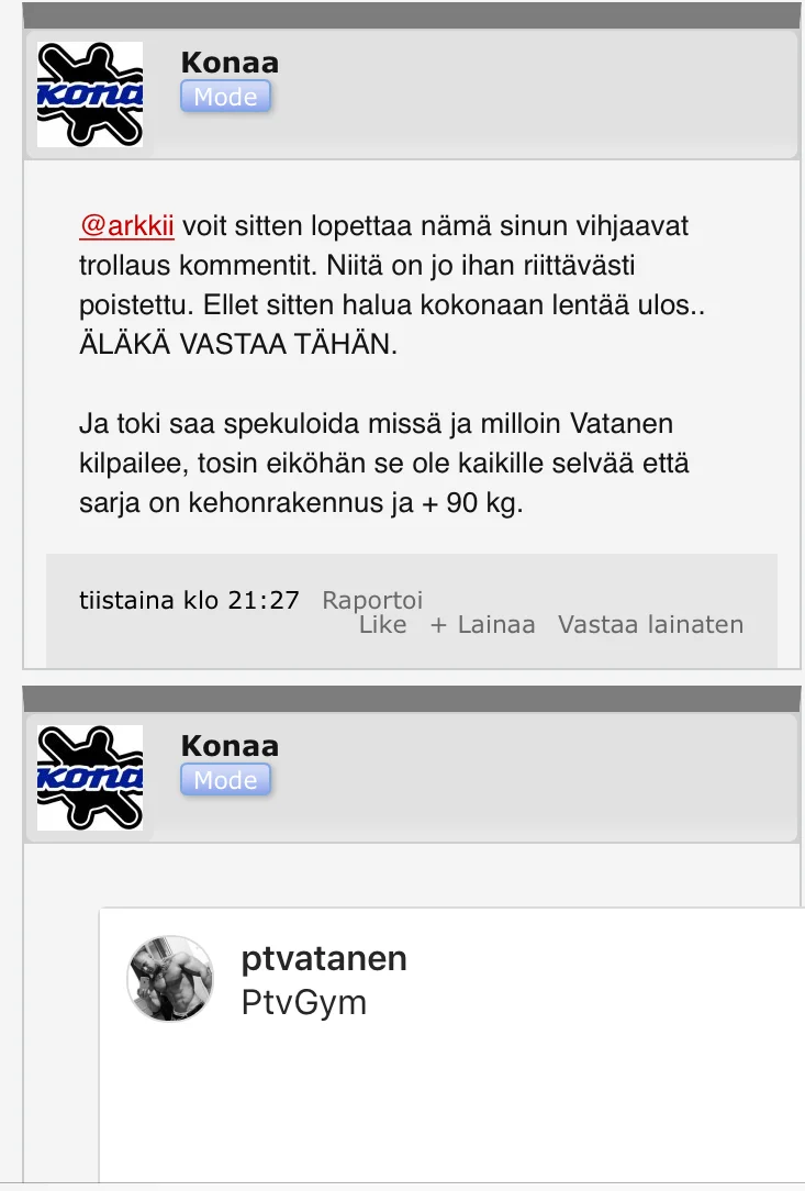 Mikä päivä postattu koska ainakaan viimeisimmillä sivuilla ei bugia. Sitten vois katsoa mitä eroa tossa postauksessa Vatasella on versus muut jotka Vatasen ketjussa toimii.Ig kuvissa käy niin. Esim Vatasen ketjussa ja tohon tyssää. Ei pääse millään eteenpäin ja jos yrittää skrollata enemmän ei pääse enään taaksepäinkään.