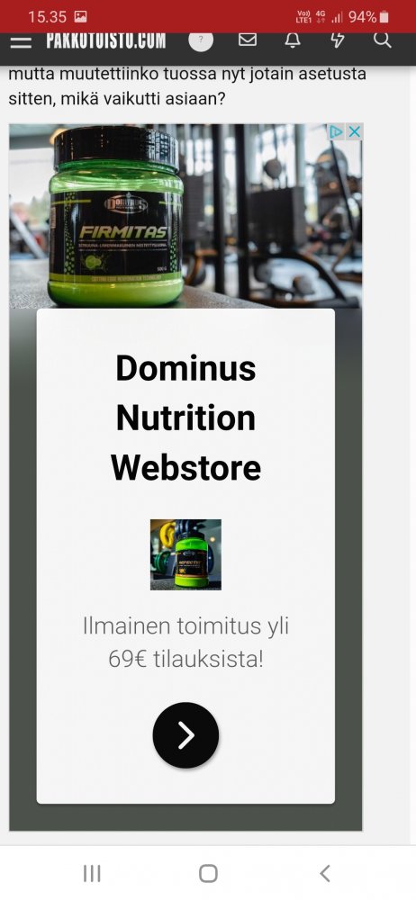 No ihan varmaan on muutettu asetuksia, koska Manniseltakin pukkaa koko näytön mainosta🤣
