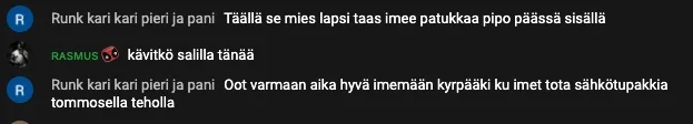 Ohan sitäkin koitettu. Viime kerralla ne sitten soitteli eläinsuojeluun, kyllä ne sen harmin ja huomion tavalla tai toisella saa. Osa on oikeesti mielenvikaisia, joten hyvin vaikea ymmärtää. Tube on siitä huono paikka striimaa, että ne saa tehtyä uuden nimimerkin alle minuutissa ja sitten se on semmoista spammiä vaan.