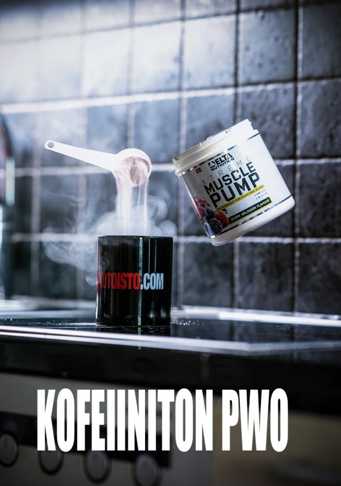 Unohtakaa se kahvista maksaminen boosterissa, ottakaa kofeiinittomia ja kuppi kahvia mieluummin. PWO:n tarkoitus ei ole saada ihmistä tärisemään, vaan sen täytyy tuoda pumppia ja ehkäistä kataboliaa. Salille mennään treenaan, ei pärisemään "kyllä potkii", sekö sen tarkoitus on, vai auttaa tuomaan lihasmassaa? Efedriini potkii, boosterit ei.