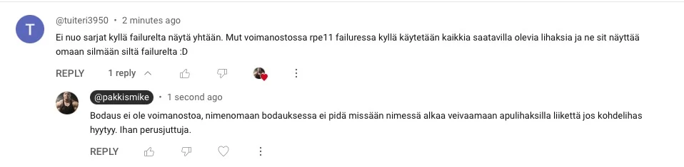 Esim Anni Vuohijoella on ainakin kyykyn suhteen kova irtiottokyky, kun hän pystyy kaivamaan toistoja, vaikka näyttää ettei tule enää yhtäkään toistoa.