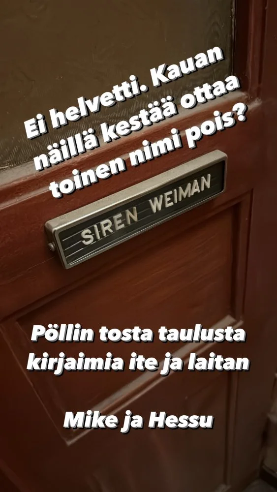 Ui juma tää oli hassua lapsena sabotoida näitä. Seinällä ku näkyy se taulu, missä kaikkien nimet, ni sen sai vaan repimällä auki.