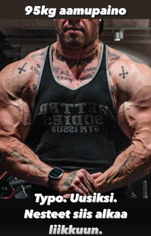 Ne on kasvanut merkittävästi, koska ne ei edes nesteisenä näytä niin pieneltä mitä aikaisemmin. Eikä viime vuoden dieetillä missään vaiheessa näyttänyt näin pyöreiltä. Etenkin juuri etuolat ottaneet melkoisesti kehitystä.Olkapäis hämää myös tosi paljon se et jos niistä lähtee rasvaa pois ni näyttää heti et olis kasvanut. Vaikka en kyllä epäile etteikö oikeasti olis myös kasvanut. Voi vaikuttaa kyl tuo rinnan varominenkin sen verran et punnerrukset tulee alitajuisesti enemmän olkapäätä hyödyntäen.