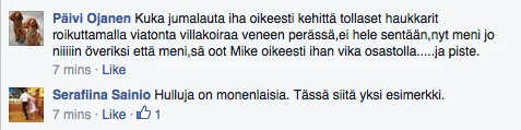 Viittaat mihin?että jaksaa aikuinen mies provoilla facebookissa.. tuskin tuo nyt kovin hääviä mainostakaan oo pakkotoistolle..