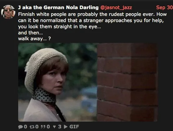 Onneksi tämä "saksalainen" vaihto-opiskelija ei tullut Tampereen yliopistoon vuonna 2015, kun ultrarasistinen Iiris Suomela hillui kaljapäissään blackfacessa ympäri kyliä.