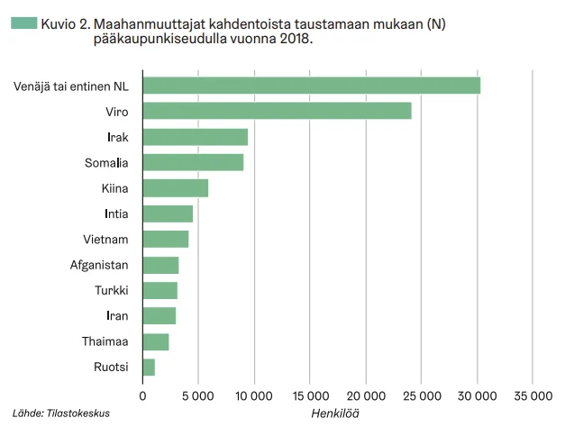 Tuosta ylemmästä graafista puuttuu maahanmuuttajien taustat, joten laitan vielä tähän alle screenshotin Helsingin raportista, joka on muutenkin hyvä lukea ajatuksella läpi. https://www.hel.fi/hel2/tietokeskus/julkaisut/pdf/21_03_10_Tutkimuksia_1_Saukkonen.pdf