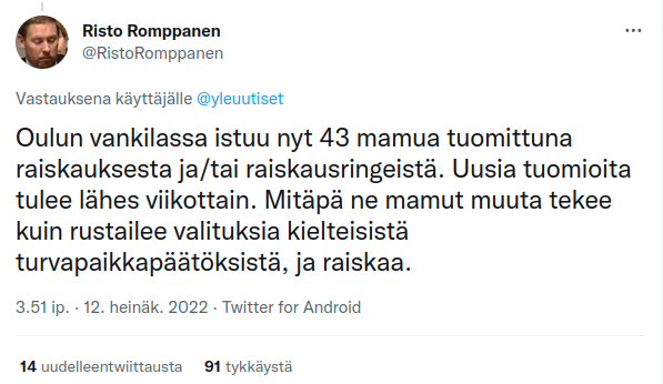 En tiedä onko tämä jo ollut täällä, mutta Oulussa on EDELLEEN irstas ja kauhea ongelma muslimi raiskauksien suhteen.