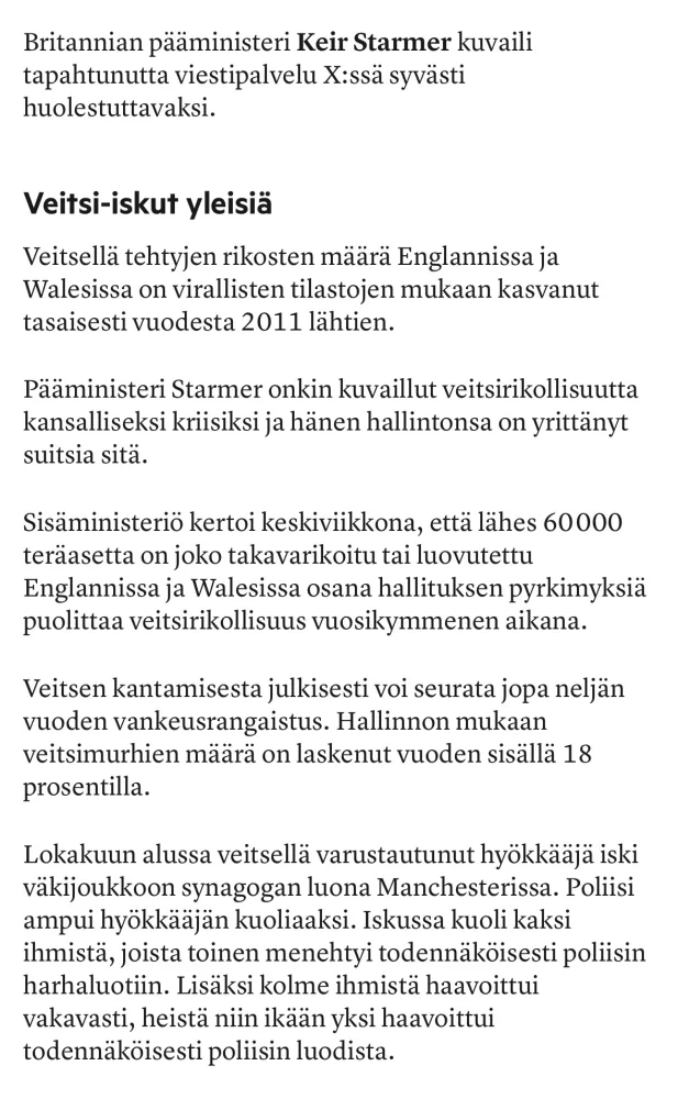 Suomessa on aika lopettaa selittely ja palauttaa turvallisuus kaduille sekä varmistaa vaikka sitten kovemalla kurilla, ettei täällä ajauduta sille Ruotsin tielle, mille nyt ollaan kovaan vauhtia luisumassa.