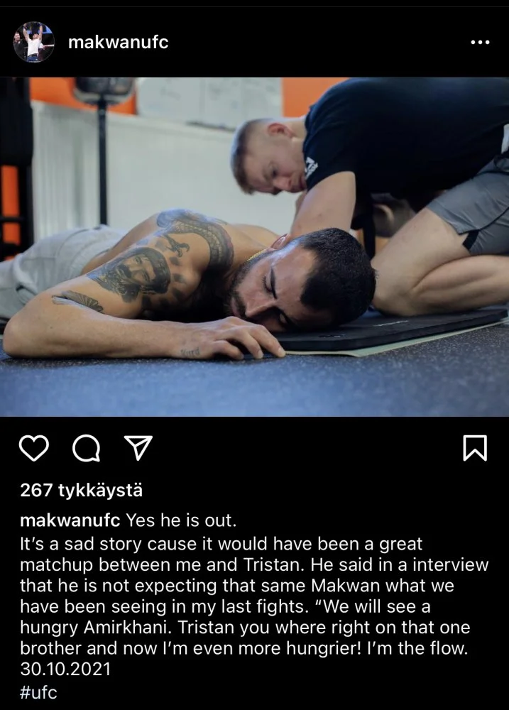 Mutta siis iha hyvä vastus tähän väliin kun Connelly on omaan muistiin jäänyt juurikin Pereira matsista, ja Pereirakin muistaakseni aika iso ukko 170 paunasiin. Connelly aikalailla dominoi sitä matossa kaks painoluokkaa korkeammalla. Lähes täydellinen vastus tähän kohtaan. Makwanin mielenkiintosin matsi on UFCssä ollut Knightia vastaan ja tämä voi viedä senkin paikan.