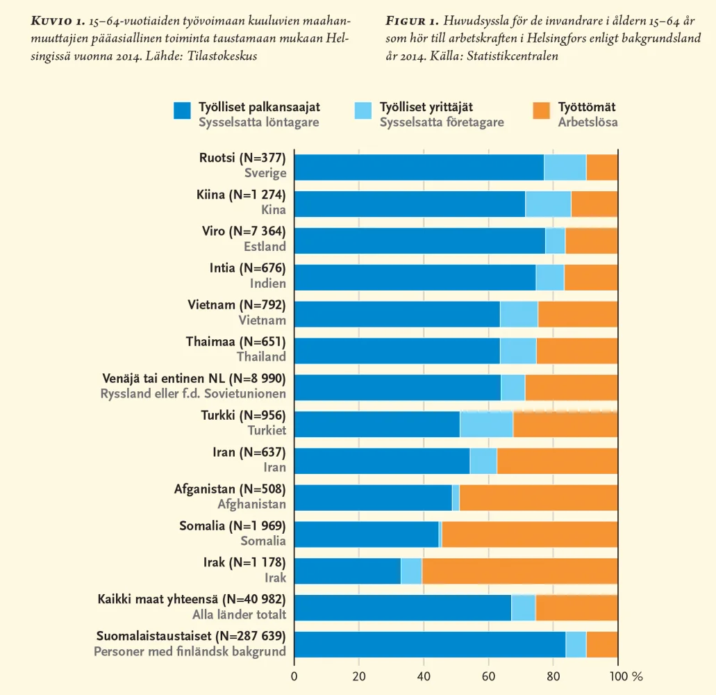 Myös esim. Turkkilaiset maahanmuuttajat taitavat valta osa tehdä töitä samoin virolaiset.