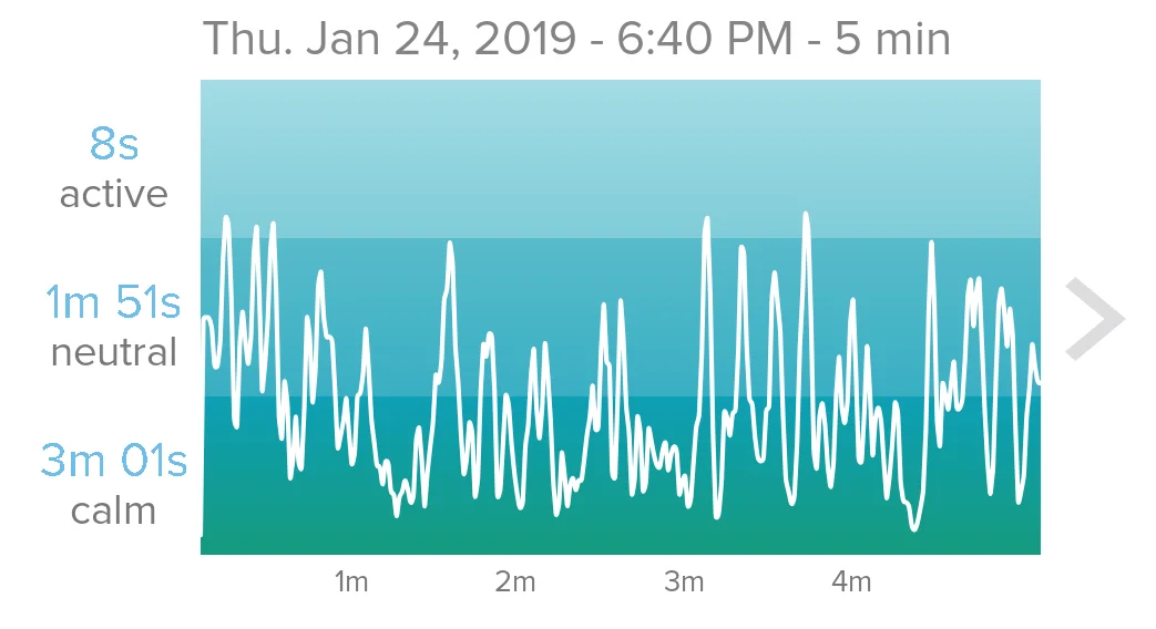 5 minuutin meditaatio missä suljin vain silmät yritin olla rauhallinen ja hengitellä. Aika rallia ja ei päässyt olotiloihin. Tavoitteena siis saada aivokäyrät tuonne calm osioon mahdollisimman paljon.