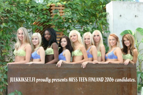 Suomen misseistä otetut kuvat on lähes aina tosi surkean näköisiä verrattuna esim. netissä pyöriviin kuviin Etelä-Amerikan misseistä. Jotenkin näyttää just siltä, että kuvat on otettu vasemmalla kädellä kiireessä. Eihän se kuvauskohde sinänsä hyvällä kuvauksella kaunistu, mutta onhan se ihan eriasia verrata hyvin kuvattua+photoshopattua kuvaa venezuelalaisesta missistä ku ohimennen napattua käsittelemätöntä kuvaa suomalaisesta missistä.