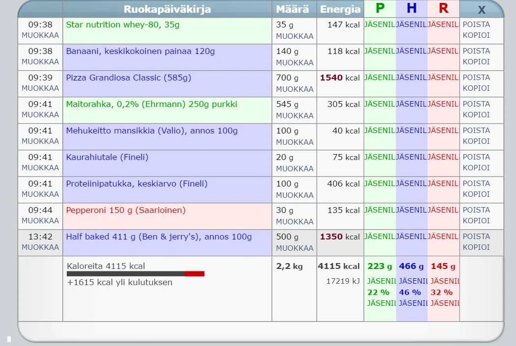 Tollaset cheattipäivän setit. En mä tiedä onko toi edes paljoa? teille bodareille taitaa olla bulkki kalorit :D