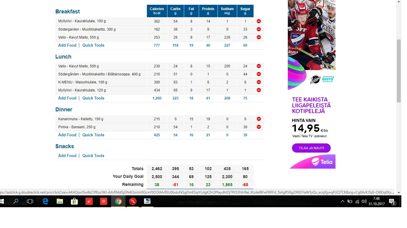 Syöminen on itselleni aika helppoa. Ainoa, mikä tökkii välillä, on treenin jälkeinen safka. Muuten menee iisisti alas.