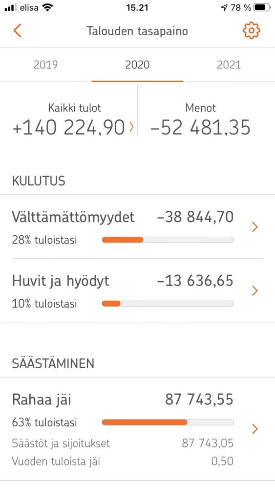 Voi kun tuo pitäisi paikkansa, kun on monta tiliä ja veivaa rahjoja sisäisesti edes-takaisin, niin tuo laskee samat rahat moneen kertaan