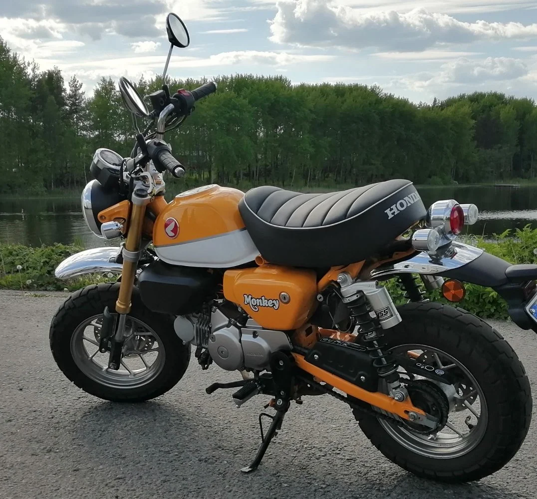 Kaupungissa suhailuun just parhaita vehkeitä jos ei kiinnosta mitä muut ajattelee :D itse käytän kaupungissa ja päivittäisessä ajossa 155cc Yamahan Aerox skootteria.Muutaman vuoden kuivan kauden jälkeen tuli palattua takaisin moottoripyöräilyn pariin. Ja tällä kertaa hyppäsin suoraan takaisin perusasioihin, eli Honda Monkey 125. Tehoa ruiskukoneessa on n. 10 hp, eli vähän, huippunopeutta on n. 100 km/h, eli vähän, ja kiihtyvyyttä on myös vähän, mutta riittää varsin hyvin kaupunkipyörittelyssä. Painoa tällä taitaa olla tankattuna sen 107 kg, eli on kevyt viskoa puolelta toiselle pitkin kyliä. Sen sijaan ajofiilistä on täydet 100 %. Sen lisäksi kaupan päälle sai lähes täydet 100 % ulkonäköä ja naurua muilta kanssapyöräilijöiltä. Juttukavereista ei ole ollut pulaa torilla kahvitellessa. Kulutus ei ihan luvattu 1,5 l/100 km, mutta alle 2 l/100 km kuitenkin, liekkö raskas kaasukahva vai kuski. Takaiskarit oli edellinen omistaja jo vaihtanutkin lisäsäiliöllisiin ja paremmin läskiä kuskia kantaviin, sekä pikasäädettävät kytkin- ja jarrukahvat. Jotain pientä lisätuningia tähän varmaan joutuu vielä harrastamaan, mutta tuskin tulee kuitenkaan mitään Yoshin kokoränniä tms., mitä näihin toki saatavilla olisi. Joku krominen taakkateline voisi olla paikallaan ja body paint match "banana yellow" fly screen myös. Muistakaahan morjestaa takaisin kun kohdataan tien päällä.