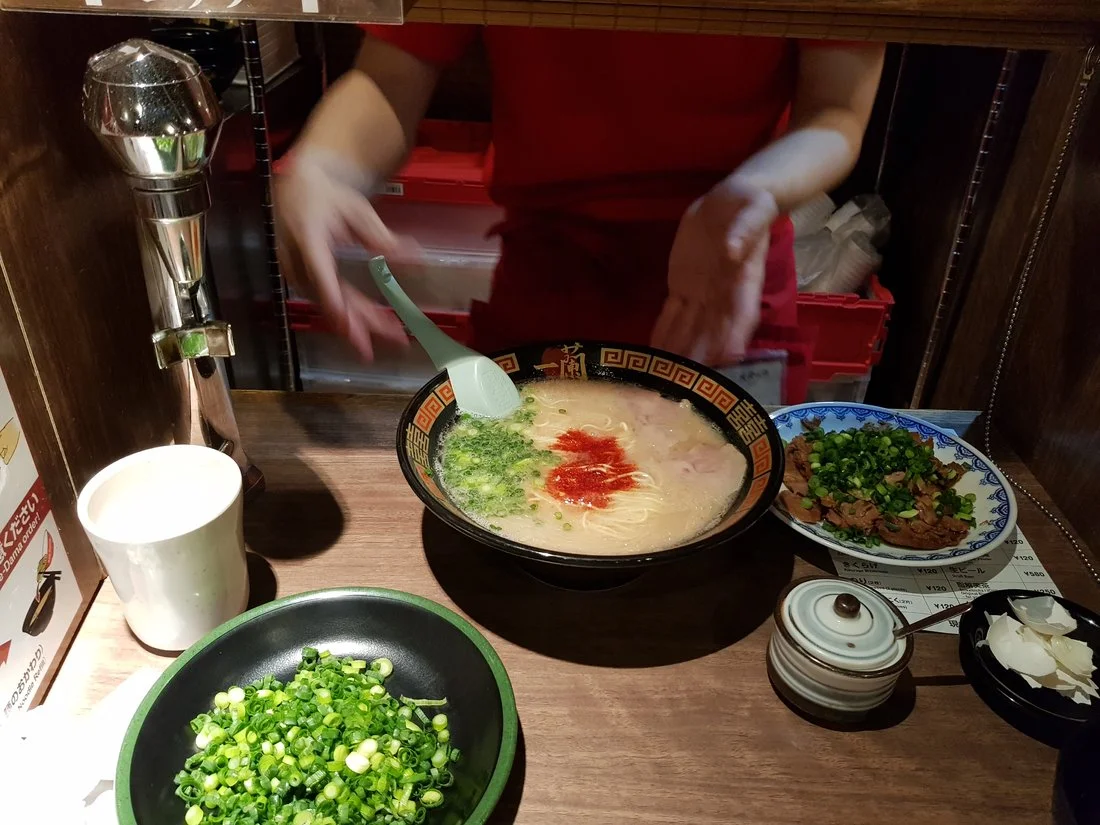 Ja koska Nainen suorittaa pyhiinvaellusta tököttikaupassa ja minulla ei ole tekemistä, opetan teille kuinka syödään Ichiran Ramen ketjun ravintolassa.