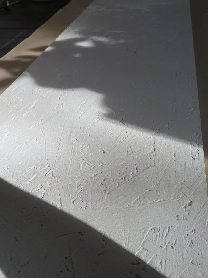 Aikas jännää kyllä maalattuna tämä osb-levy. Pitäisiköhän laittaa vielä se kolmas maalikerros, vai kasata koko sovahässäkkä jo tänään.