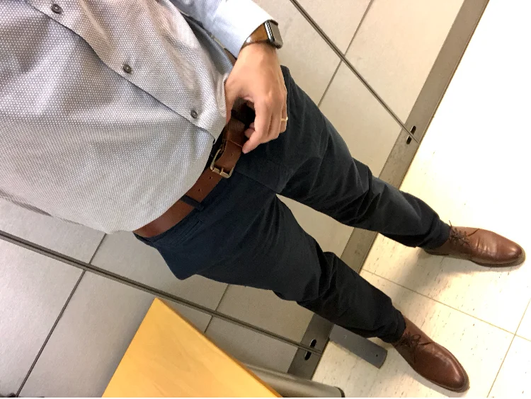 Samalla ostin sen vyön, kahet chinot ja kaks kauluspaitaa. Oli pakko hakee äxälliä ku vanhat L laadun paidat näytti makkarankuorilta.