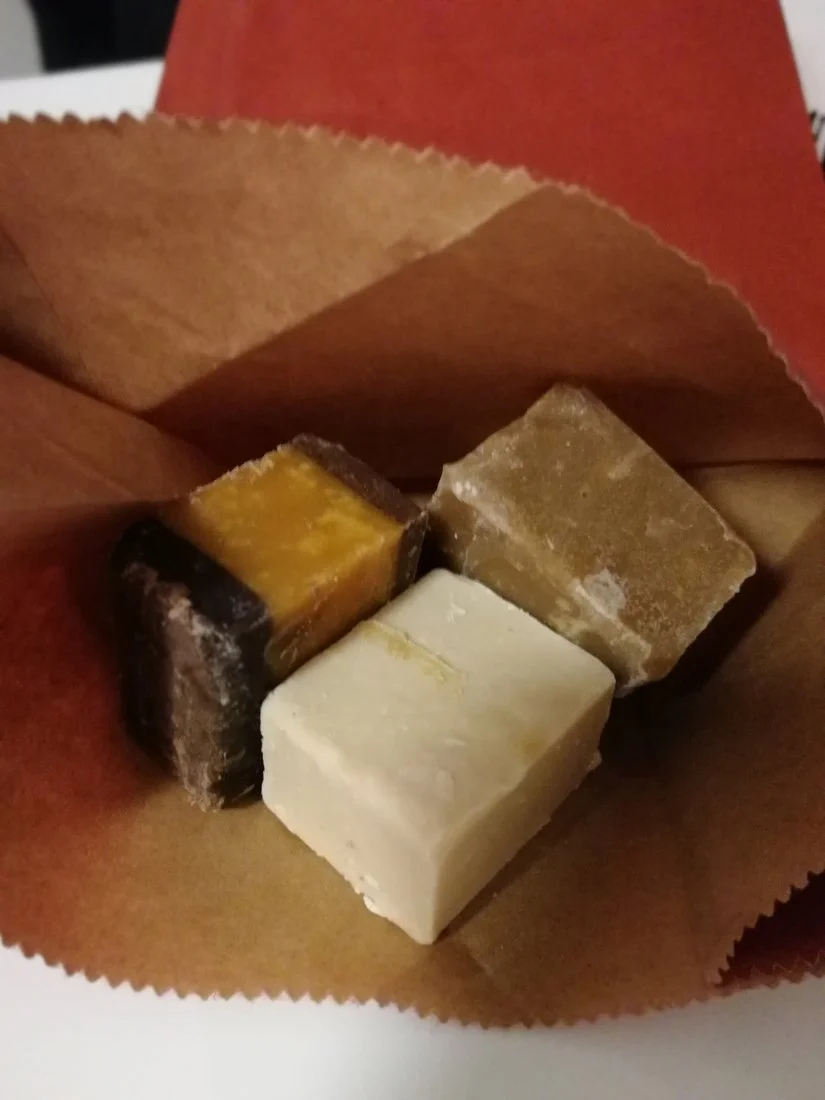 Fudgea.Onko nuo saippuaa vai jotain syötävää herkkua?