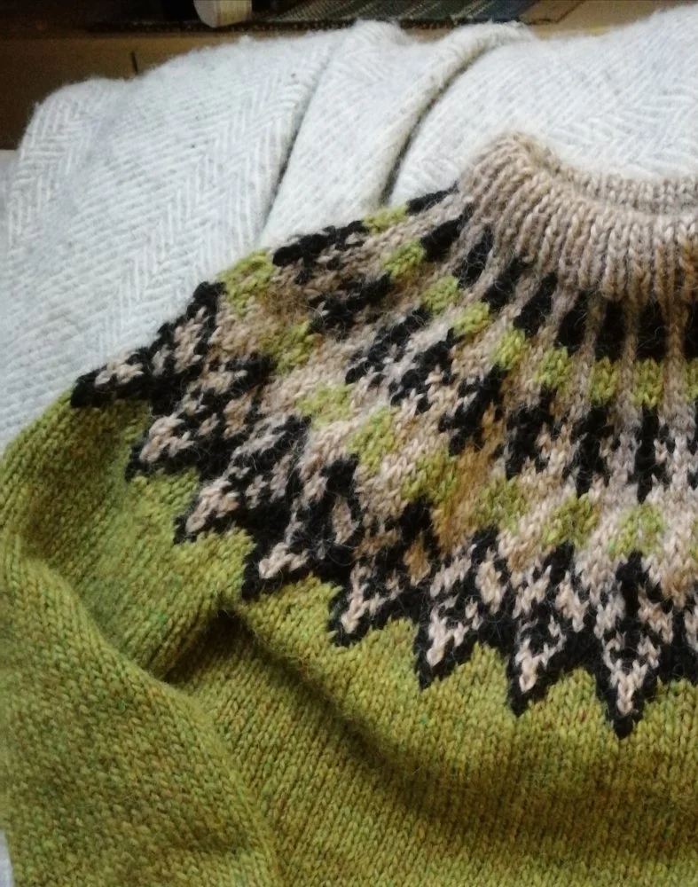 Lankojen päättely typerää hommaa. Paita valmistui jo elokuun lopulla, mutta ei oikein ollut inspiraatiota viimeistelyyn. Nyt on valmis. Käyttöön, kun on kuivunut.