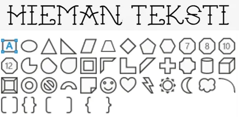 Hieman tekstiä ja muutama ihan yksinkertainen perusmuoto.
