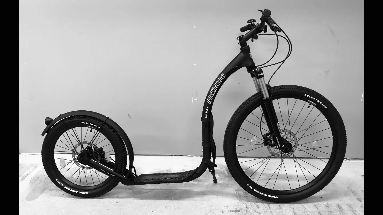 Kyllähän tuolla kestopäällysteellä pärjää. Vähän jäi gummit pieniksi nyt.Tällänen se sitten on. Kuvasta puuttuu koiranhihna-ohjuri ja sigma cycling compuutteri. Nekin asennettu. Ei vielä kokeiltu koiran kanssa. Pitää varmistaa eka että vakuutukset kunnossa.