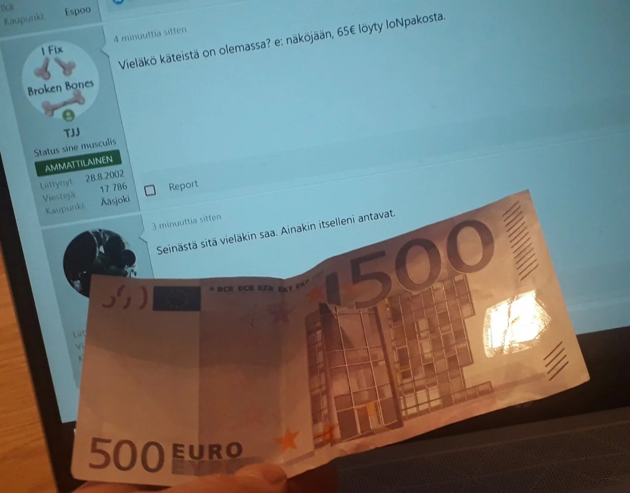 Vieläkö käteistä on olemassa? e: näköjään, 65€ löyty loNpakosta.