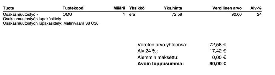 Sit että sai edes aloittaa koko homman, niin siinäkin maksettiin tämä, ihan vain että ne mailas että maksa lasku niin saatte aloittaa. Sit alkoi toi vajaan 200 euron rumba ja ramppaaminen täällä joka välissä.