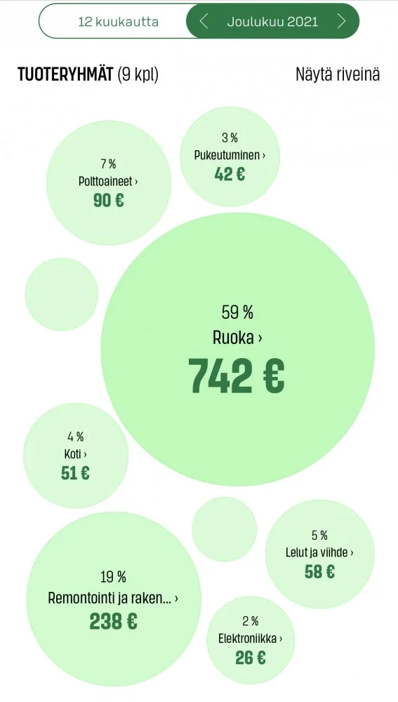 kuu on pian puolessa ja vähä rapiat 300€ on mennyt rahulia tähän mennessä, suurin kuluerä/vastike, toiseksi suurin/henkilöauton moottoribensiinisäiliön täydenys piripintaan: ysikasia, alle kaks euroa litra!
