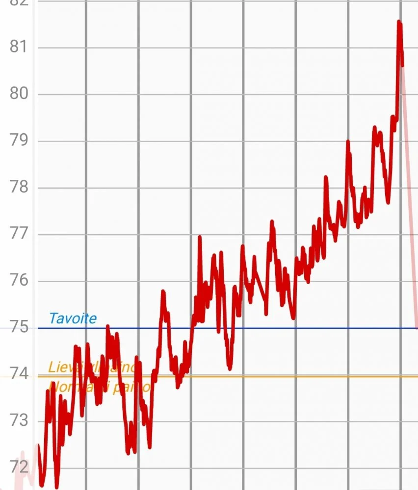 Minulla kans kaikki muu jyrkästi alaspäin, paitti paino joka tasaisessa ylämäessä.