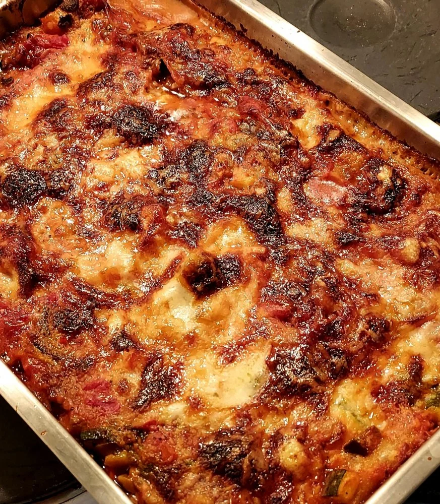Paljon pekonia, jauhelihaa, kermaa ja juustoa... Nam.