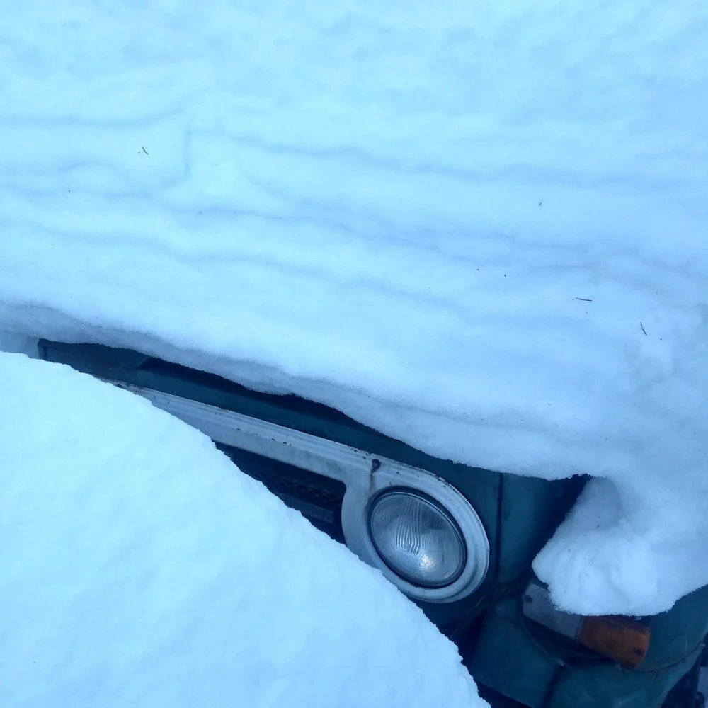 Kaverin 110 kun vietti talven lumikasan alla, niin ensin nyrkillä kumauttamalla linttaan painunut peltikatto suoraksi ja sitten avaimesta kääntämällä käyntiin.Alkuperäisen lasikuitukaton päältä pitää kyllä ainaki keventää.