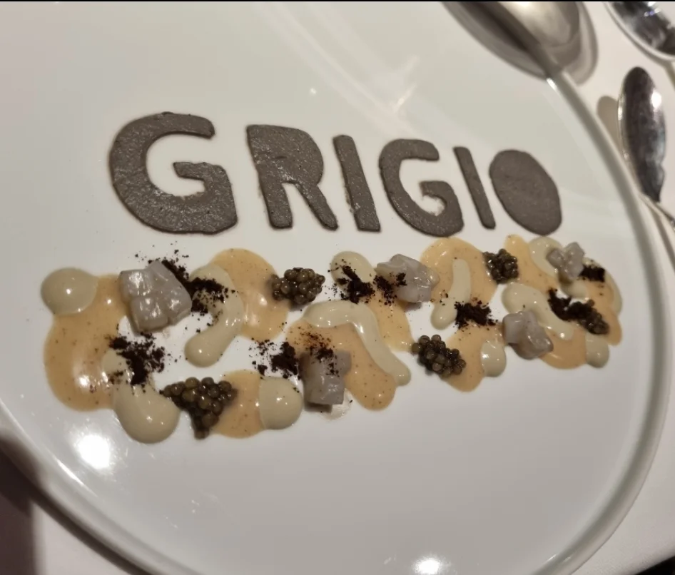 Harmaa/musta riisi. Mustekalaa raakana, kypsennettynä, riisivaahtoa, kaviaaria..