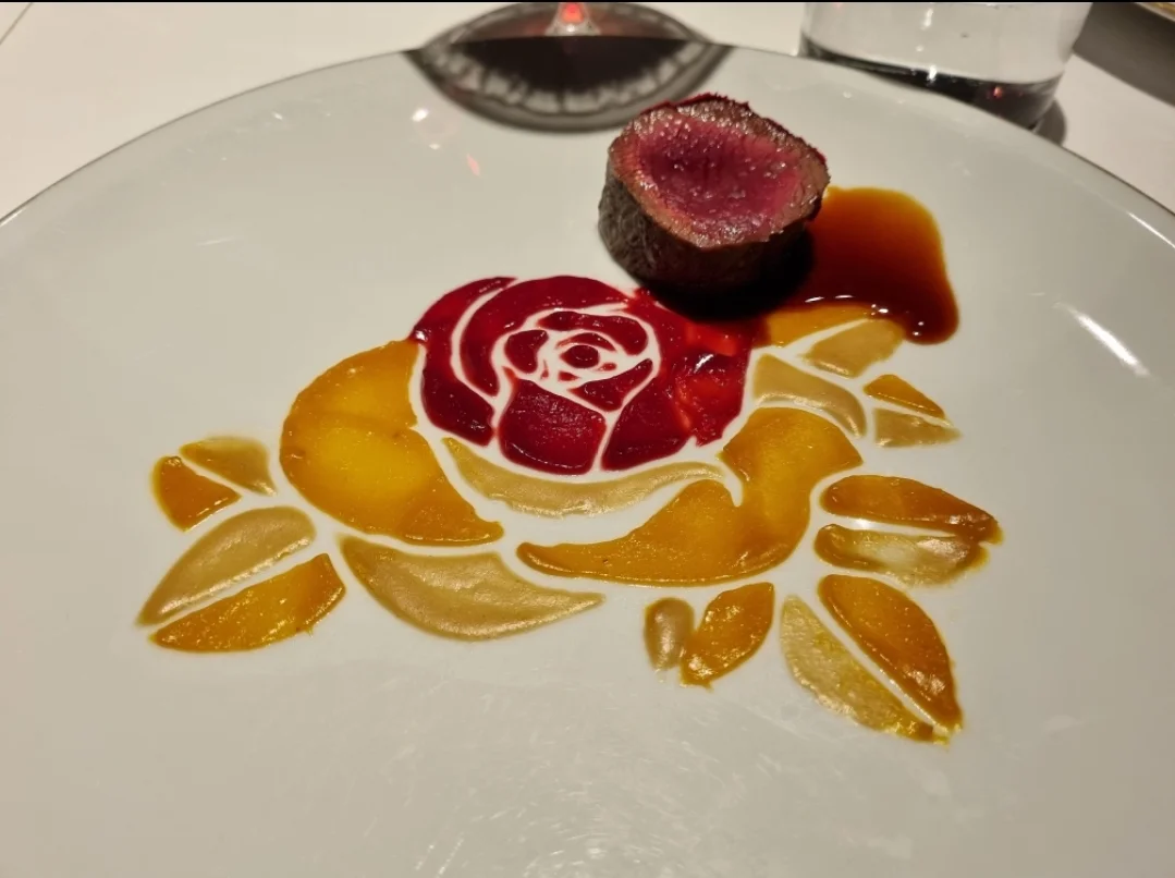 Peuran sisäfile. Soosit tyrniä, vadelmaa, ruusua, hasselpähkinää..