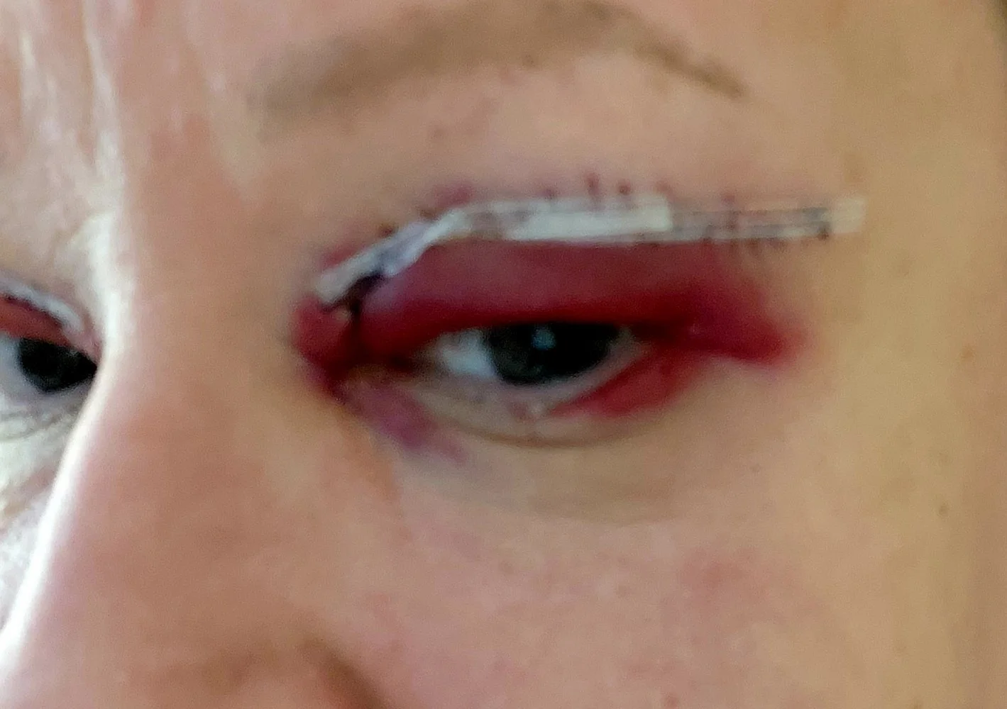 Luomen ihon leikkaus ei tuntunut ollenkaan, mutta rasvakertymien poisto kyllä sattui. Olisi toki voinut pyytää lisää puudutusta, mutta suomalaiseen tapaan purraan hammasta eikä valiteta. Oikeaan silmään tehtiin lisäksi jotain jollekin lihakselle (niitattiin ylemmäs kiinni 🤔).