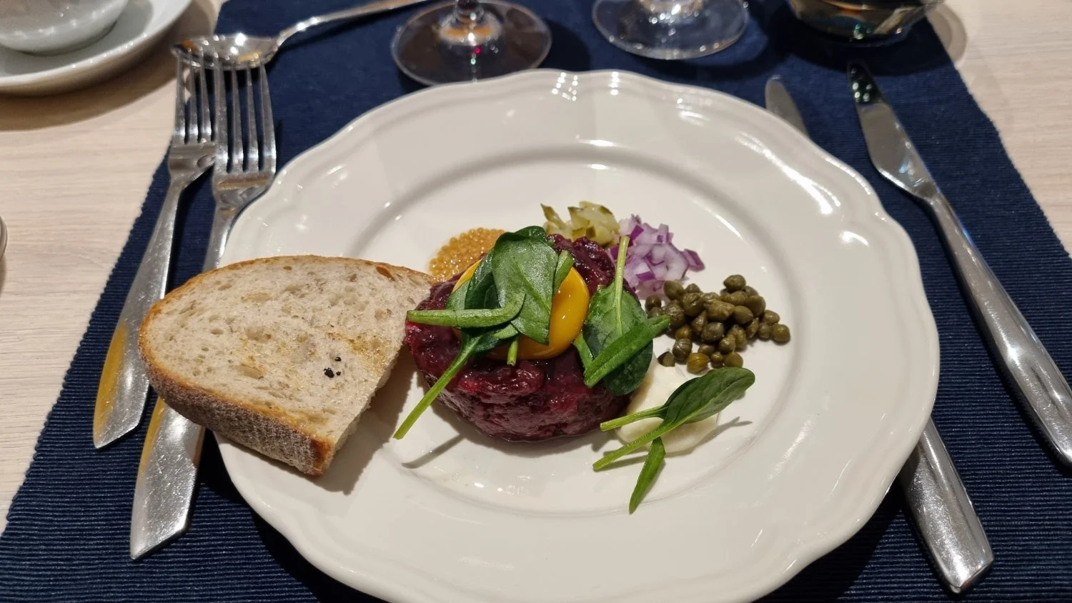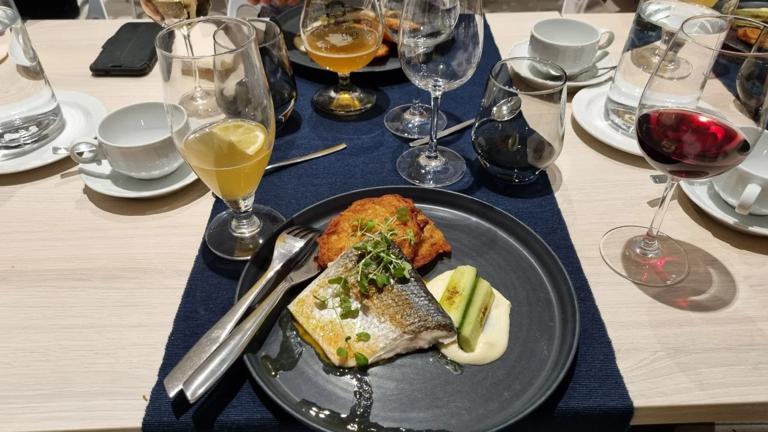 No niin. Tälleen vaan punaista kalan kanssa. Nuori viini, hentoinen. Tartar oli vähän ovela.