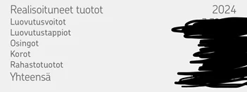 Tuostahan sää et just näe sitä, minkä verran se sun oikea nettotuotto olis, kun verot vähennetään.