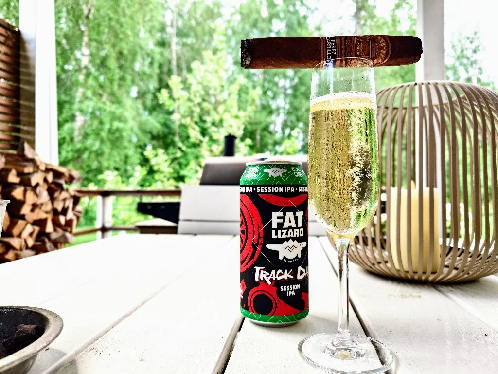 Sikarina sitten taas Carrillon Encore Majestic. Tämä onkin vamha tuttu jo, mutta oikein mukava pötkäle. Ja oluena Läskiliskoa.