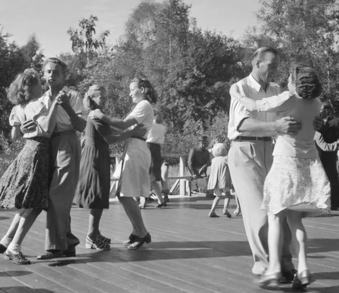 No, jos kyseessä olisi perinteisten paritansien iltamat, niin Sylvi laittaisi menemään helmat heiluen. Sota-aikanakin vedettiin foksit ja tangot Kannaksella, vaikka tanssikielto olikin. Se oli kuulkaa reipasta meininkiä se!