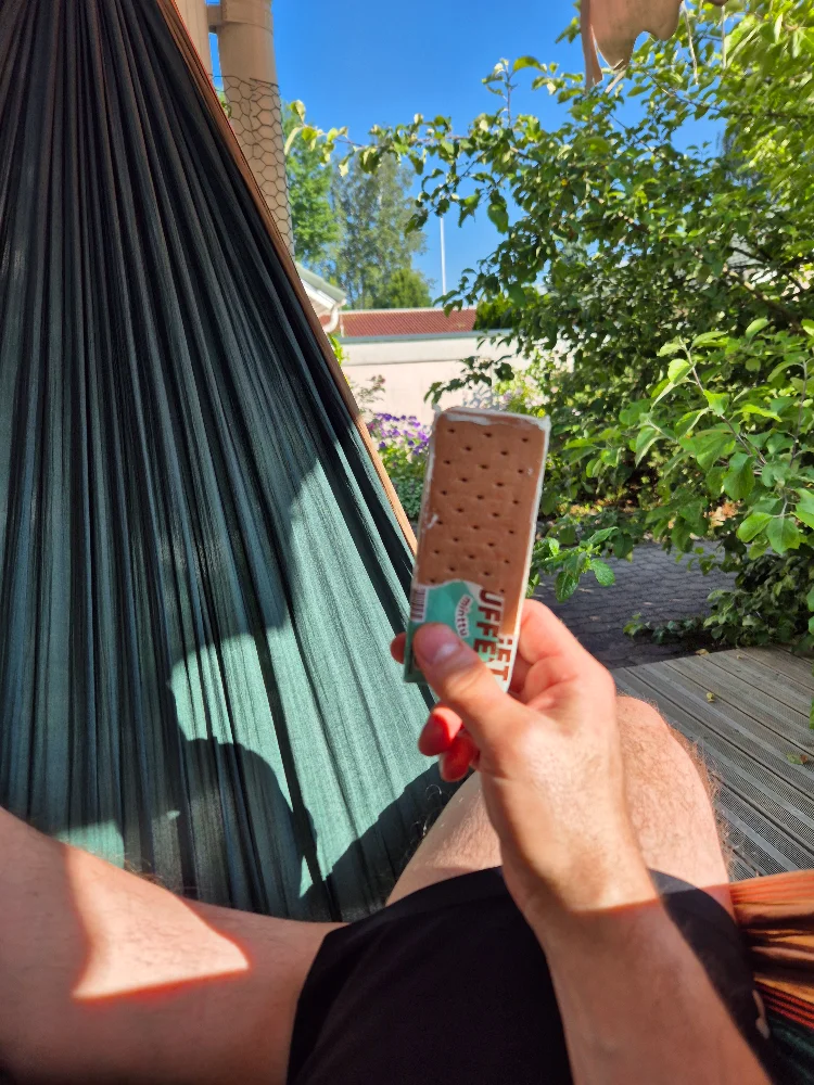 Sön kolme jäätelöä ennen lenkkiä. Jäätelön voimalla jaksoin juosta koko lenkin ajan.
