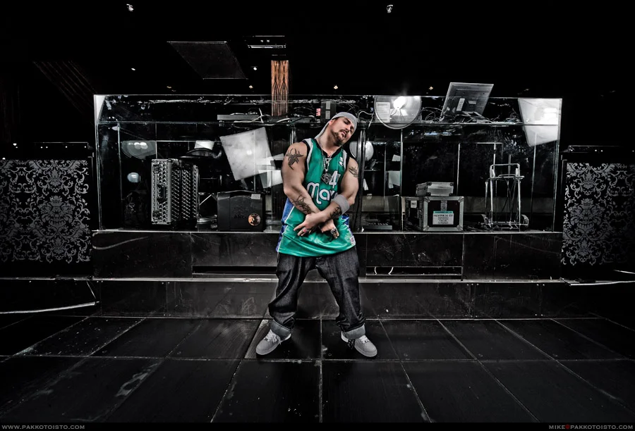 Eilisistä kuvauksista yö-ketjulaisille kuva. Voiko kukaan väittää, etteikö Nyyssölä olisi ihan vitun coolin näköinen gangsta-räppäri?