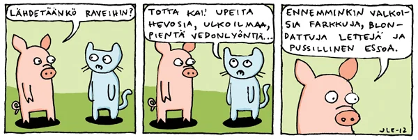 En meinannut, mutta tuon possut suunnitelma kuullostaa melko hyvältä, vielä kun olen itsekkin tälläinen possu (bulkilla siis).Meinasitko raveihin?
