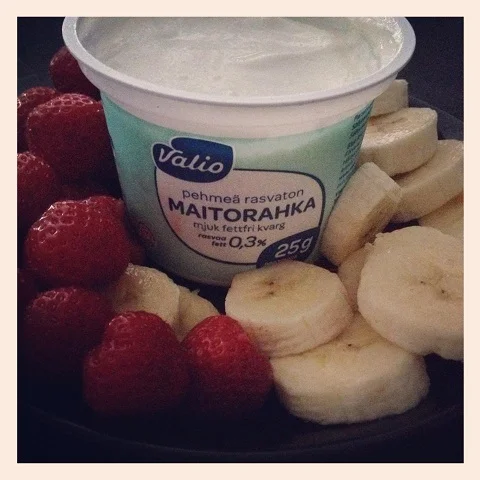Ui parhautta! Mä oon välillä vetäny välipalaks ton purkin rahkaa ja sinne sekaan banaani ja mustiokoita, kun on tarvinu vähän hiilariakin saada mukaan.