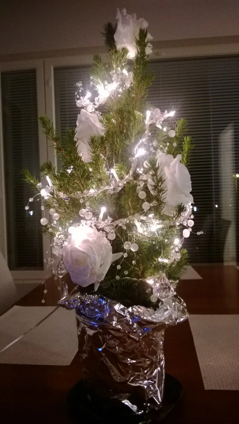 Ei vaan, mietin tuota kuusta kasatessa, että minkähän takia mä muovisen edes hankin. No kuusi ku kuusi, ei sen tuos kauaa tartte olla pystyssä.