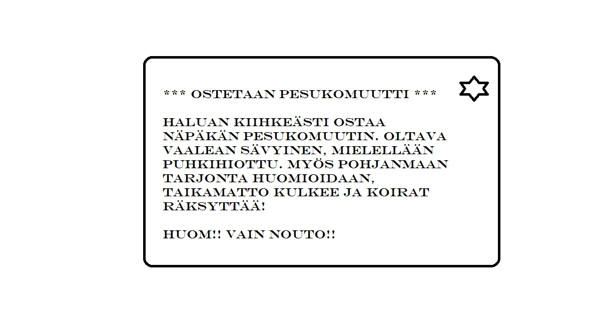 En todellakaan oksenna, oonhan mä sentään nähny sun jääkaapillakäyntikuvan. Ei ihan joka naikkosella tommosta komuuttia nimittäin ole!
