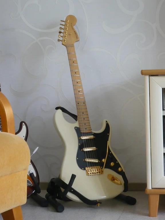 Nitroselluloosaa valmistamani skeban kaulassa, ei vielä UV-käsittelyä kokenut:
