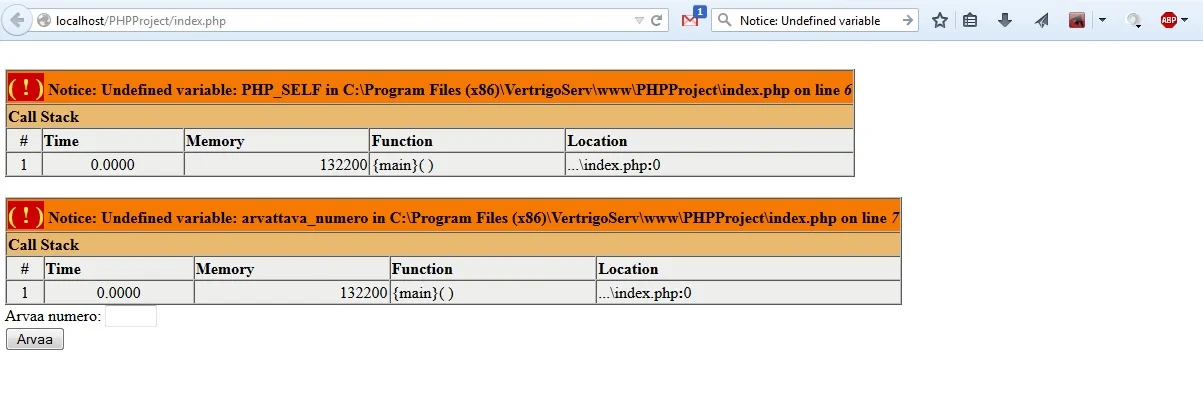 ( ! ) Notice: Undefined variable: arvattava_numero in C:\Program Files (x86)\VertrigoServ\www\PHPProject\index.php on line 7