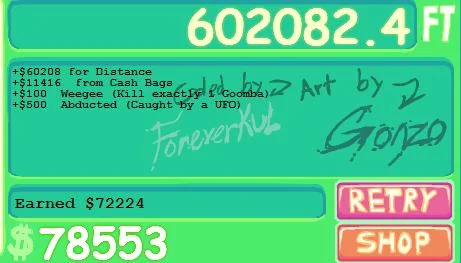 Mä en pääse yli 2,5 miljoonan ilman että osun UFOon, menee hermot ennen kuin hardbadge on tienattu...