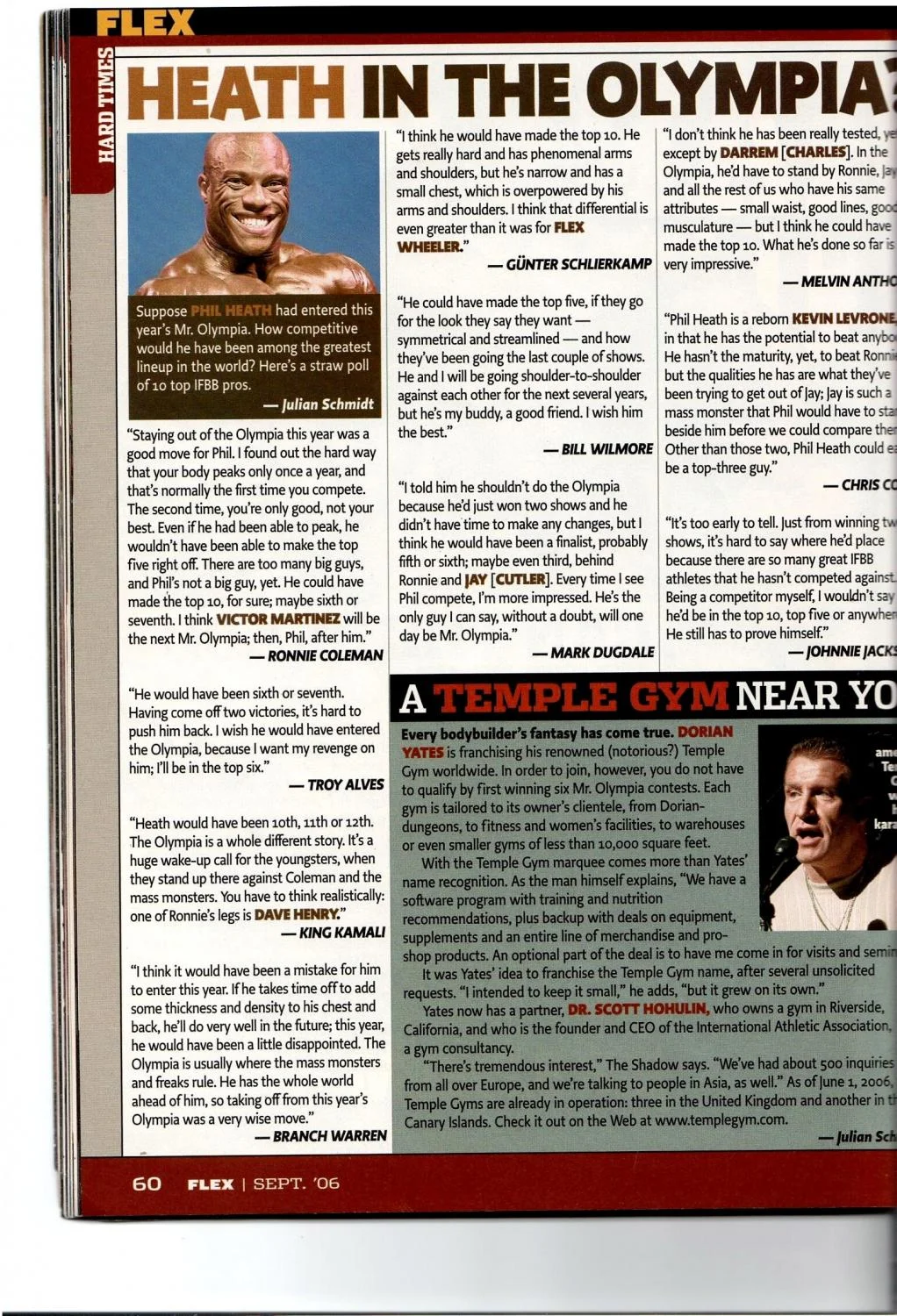 On. :) Mulla on ikivanhoja Flexejä ja muita bodymagazineja toista tusinaa tuolla laatikossa ja eilen lueskelin niitä. Hyvää juttua oli Phil Heathistakin esim. 2005 vuonna kun jo silloin jotkut kuten Mark Dugdale kommentoi että jonain päivänä lähitulevaisuudessa Phili on varmasti Mr.Olympia, ja jotkut dissasivat ettei tule mitään saavuttamaan koska on niin kapea etc.
